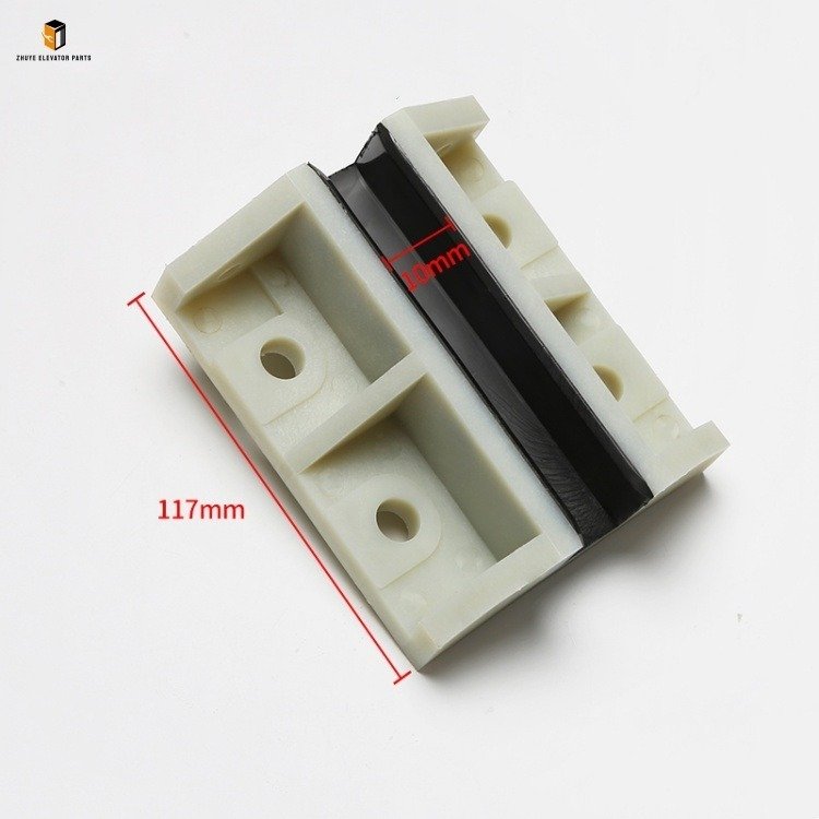 If replacing old guide shoes, first take photos to record their installation position and fixing method for later reference. Remove the fixing bolts of the old guide shoes and take them down from the car or counterweight. Take the new 12000164-A guide shoe from Nanjing Zhuye Elevatorparts, install it on the preset bracket, and fasten it firmly with bolts (ensure the guide shoe is closely attached to the bracket). Adjust the gap between the guide pad and the guide rail using adjusting screws—use a feeler gauge to confirm the gap is 0.5-1mm, which ensures smooth operation without excessive vibration (excessive gap may cause vibration that affects the door machine pulley system). After adjustment, lock the adjusting screws to prevent loosening. Repeat the operation to install all guide shoes and check that they are aligned with the guide rail.
