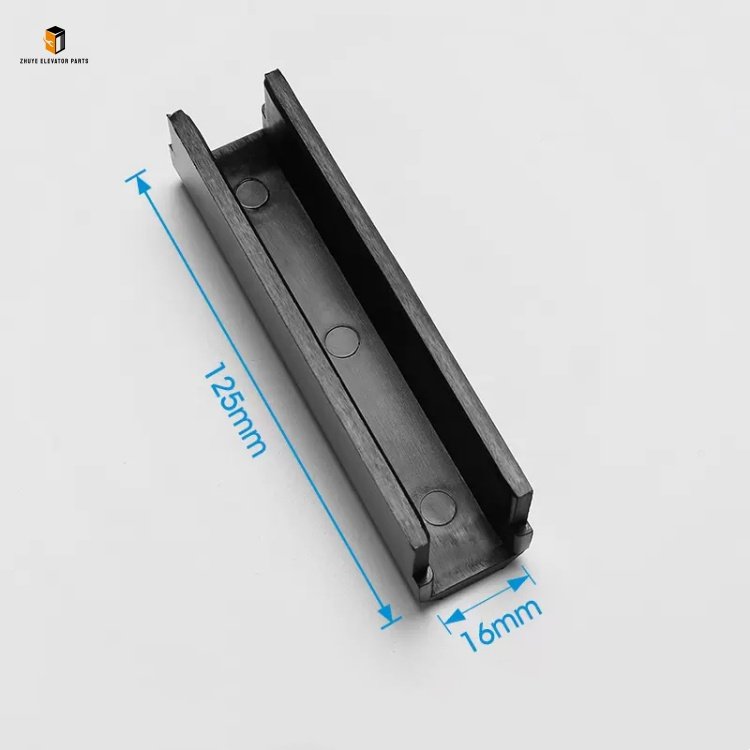 Nanjing Zhuye Elevatorparts adheres to the core philosophy of “Wear Resistance, Smooth Guidance” and implements strict quality control throughout the production and inspection process of both 125*16mm and 125*10mm guide shoe linings. Each unit undergoes multi-stage pre-delivery inspections, including dimensional accuracy testing, wear resistance trials, hardness detection, and shock absorption performance verification. The linings adopt advanced materials and manufacturing technology: made of high-quality polyurethane (PU) or nylon with a Shore hardness of 65–75A to balance wear resistance and flexibility; the surface is specially treated to reduce the friction coefficient (≤ 0.12), ensuring smooth sliding without damaging guide rails; precise 125*16mm and 125*10mm dimensions ensure seamless fitting with corresponding guide shoes, avoiding gaps that may cause jitter; the material has excellent aging and oil resistance, adapting to the humid and dusty environment in elevator shafts. With standardized mounting grooves and holes, both specifications can be quickly installed on mainstream guide shoe models without additional modifications.