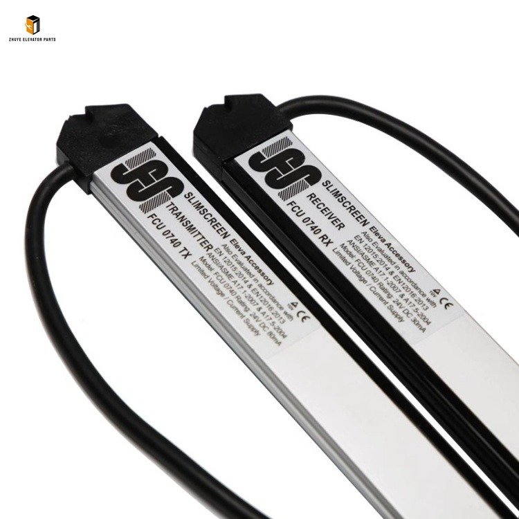 The elevator light curtain is a core safety component that prevents door-closing injuries by detecting obstacles in the elevator door area. The Elevator Light Curtain FCU0735TX (transmitter) and FCU0740RX (receiver) launched by Nanjing Zhuye Elevatorparts form a high-precision safety protection system tailored for mainstream elevator models. It is widely compatible with renowned brands such as Schindler, OTIS, and KONE, suitable for both passenger and freight elevators. Adopting advanced infrared photoelectric sensing technology, this light curtain features dense light beams (up to 72 beams), a detection height of 2000mm, and a response time of less than 10ms, ensuring full coverage and rapid obstacle detection. Crafted with high-transmittance optical lenses, sealed aluminum alloy casings, and anti-interference electronic circuits, it meets international elevator safety standards (EN 81-20, GB 7588) and has become a preferred choice for global elevator maintenance teams and manufacturers.