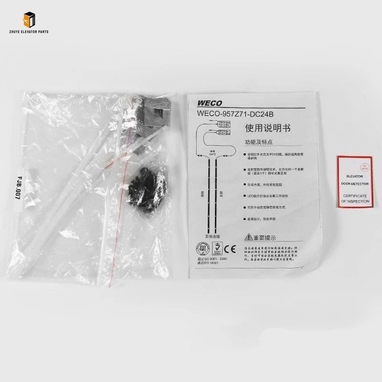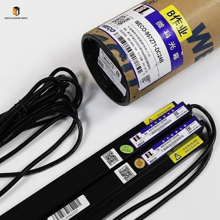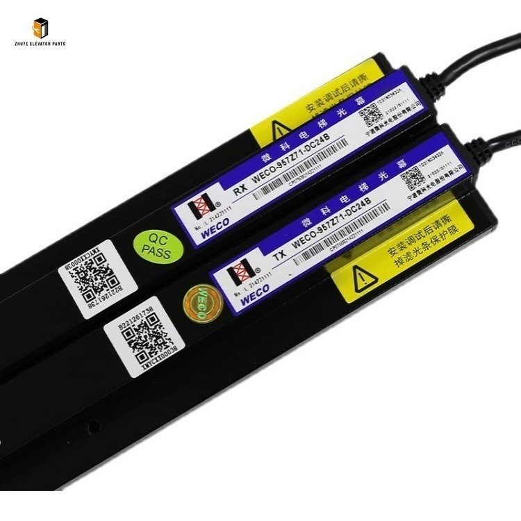 The elevator light curtain is a critical safety component for elevator door systems, acting as an invisible protective barrier to prevent pinch injuries during door closing. It operates by forming a dense infrared light grid between the door panels; when any light beam is blocked by an obstacle, the system immediately sends a signal to the elevator controller to stop or reverse the doors, ensuring the safety of passengers and goods. The Elevator Light Curtain WECO-957Z71-DC24B launched by Nanjing Zhuye Elevatorparts is a high-performance safety device tailored for mainstream elevator systems, specifically designed for DC24V power supply scenarios. It is widely compatible with renowned elevator brands such as Schindler, OTIS, and KONE, suitable for both passenger and freight elevators. Adopting advanced infrared sensing technology, this light curtain features high detection accuracy, fast response speed, and strong anti-interference ability, strictly complying with international elevator safety standards (EN 81-20, GB 7588) and becoming a trusted choice for global elevator maintenance teams and manufacturers.