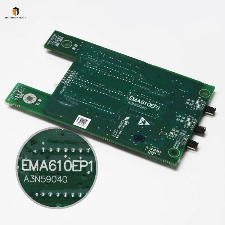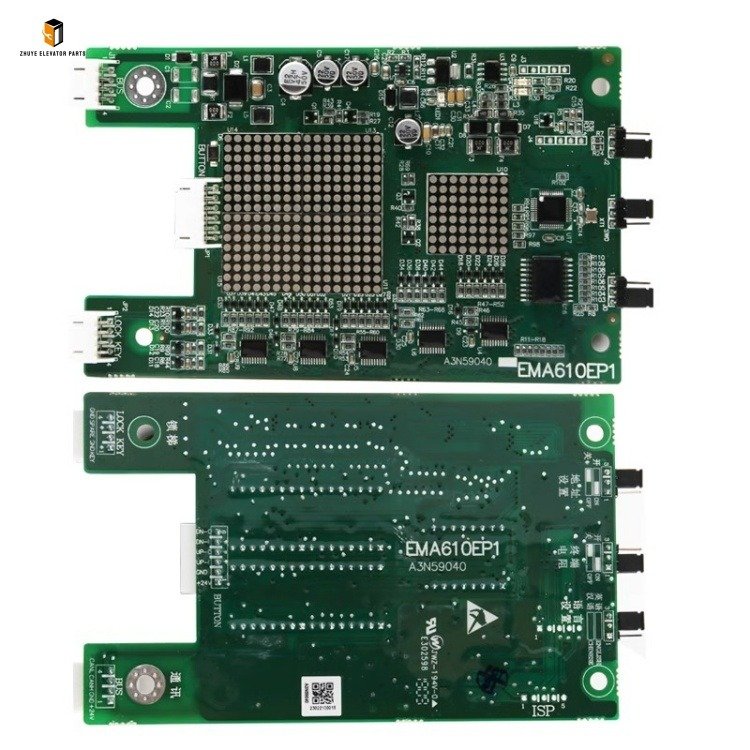 If replacing an old display board, first take photos to record the wiring connections, installation position, and fixing method for future reference. Disconnect the wiring harness from the old display board according to the labeled records and remove the old board. Take the new EMA610EP1/A3N59040 display board from Nanjing Zhuye Elevatorparts, insert it into the installation slot (ensure a tight fit without looseness), and fasten it with fixing screws. Connect the wiring harness to the corresponding terminals strictly in accordance with the photos and the wiring diagram provided by Nanjing Zhuye—clearly distinguish between power wires, signal wires, and ground wires to avoid wrong connections. After wiring, use a multimeter to test the power supply voltage, ensuring it matches the display board’s rated voltage (refer to Nanjing Zhuye’s technical parameters for details).